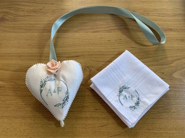 Beautiful quilt for the happy couple Christine, you did really well considering you were out of your comfort zone! Beautiful heart and hanky, so lovely for them to have something with family meaning.